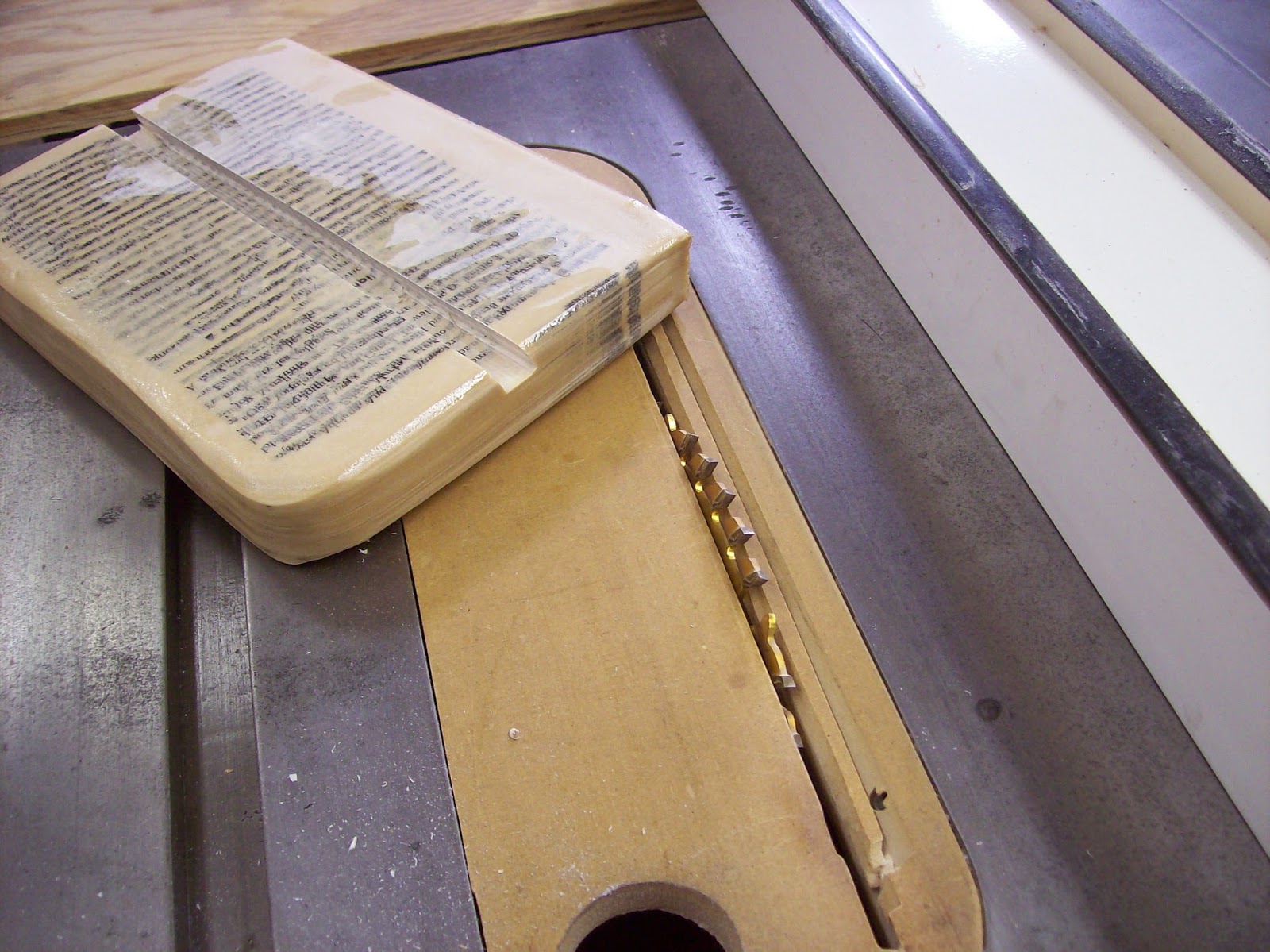 | Cutting the groove was a simple matter of setting the blade to 20* and making a series of passes. |